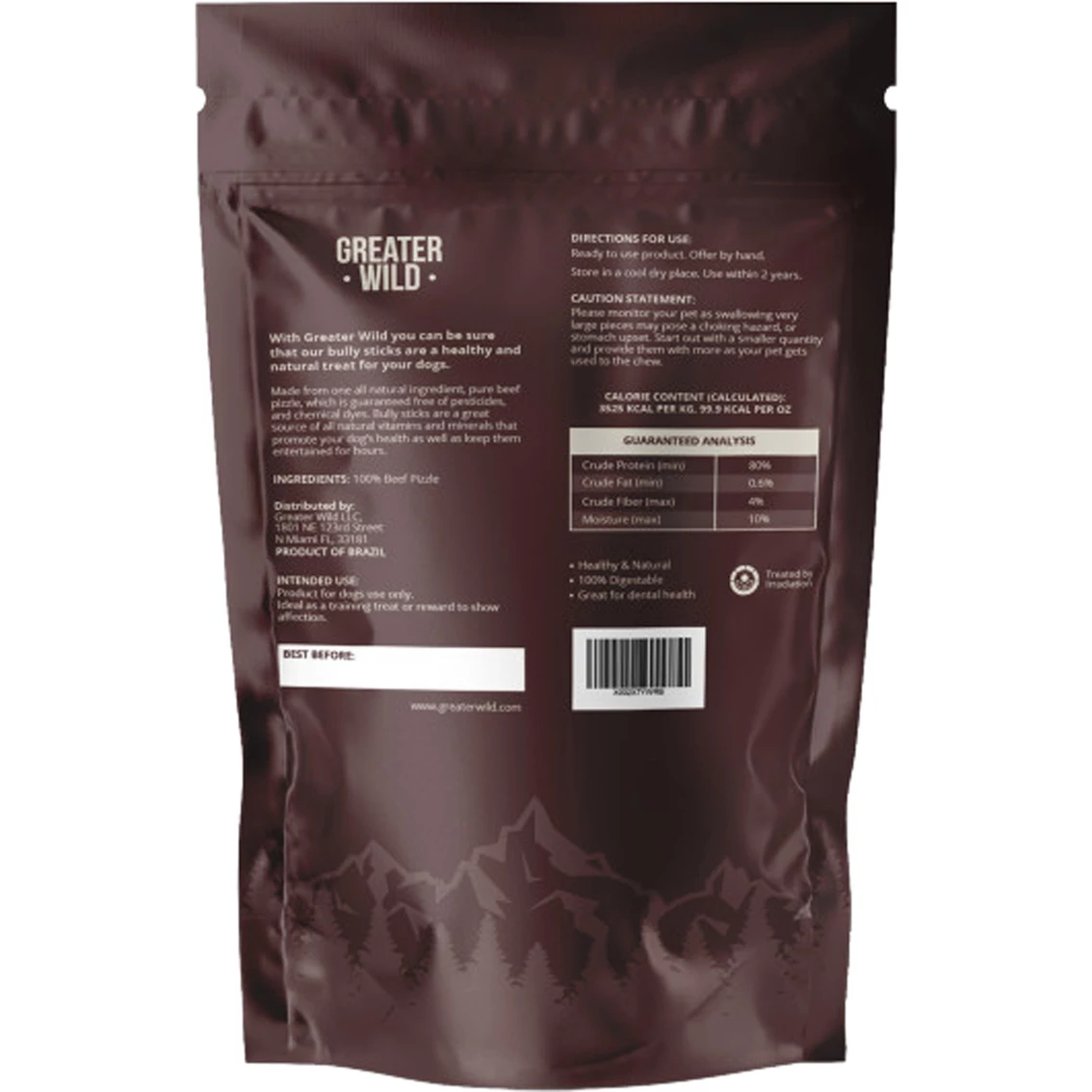 Your pooch will be so entertained chewing down long hours of accumulated energy through these most ingenious of snacks! Whether you have a young puppy or an older dog with sensitive digestion that’s struggling with boredom behaviors, these 12″ bully sticks are a great choice for both home entertainment and on-the-go chewing. They make a great alternative to rawhide chews since they last longer and don’t splinter as easily, so your pup can chew away worry-free! Because they come from bulls and livestock rather than beef bones scraps or other undesirable sources, you can rest assured knowing that your pup is getting a healthy, 100% digestible treat. Greater Wild’s 12-inch bully sticks will entertain your dog longer than many other chews because of their size and texture, which can encourage healthy chewing and reduce negative behaviors such as persistent barking or destructive chewing. They also promote dental health. As dogs chew on these bully sticks, their chewing action grinds down the stick, which helps clean tartar buildup from their teeth and reduces bad breath. Low in fat and fully ingestible, these sticks are a great supplement to your pet’s diet, and they make for a great chewing experience. Not only do they make for an energetic snack time session, but these treats will last endless hours of uninterrupted chewing!