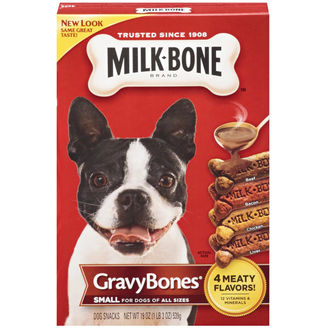 Get Milk Bone Happy! What’s Milk Bone Happy It’s that undeniable feeling of excitement you get when your dog gets excited – it’s contagious. And, Gravy Bones are a delicious, nutritious treat. Choose from four flavors of biscuits coated with rich, meaty gravy and fortified with 12 vitamins and minerals. These hard and crunchy treats also freshen dogs breath and cleans their teeth.
