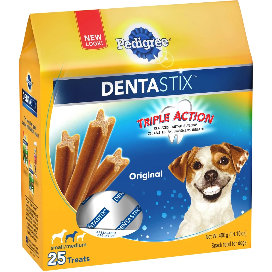 Pedigree Dentastix Small and Medium Dog Treats are clinically proven to reduce up to 80% of tartar build-up. They are also clinically proven to reduce plaque buildup. Dentastix treats help clean teeth down to the gum line. Size: 25 ct.