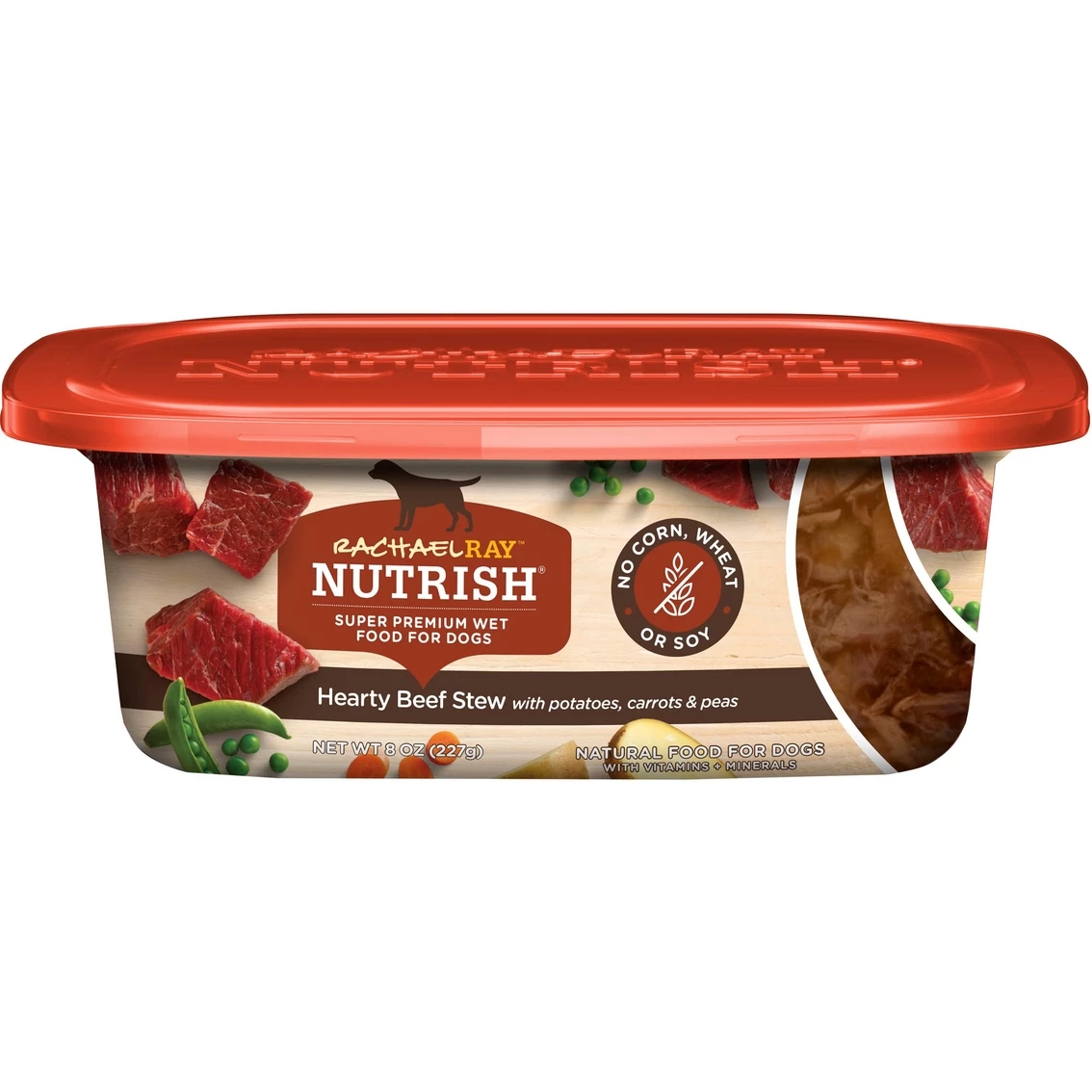 Rachael Ray Nutrish Hearty Beef Stew Dog Food, is a natural food plus vitamins and minerals. Real meat is always the second ingredient. Hearty veggies you can see, sweet potatoes, tomatoes, green beans, etc. Real recipe equity from Rachael’s kitchen. Convenient packaging with a resealable lid. No corn, wheat, soy or gluten.