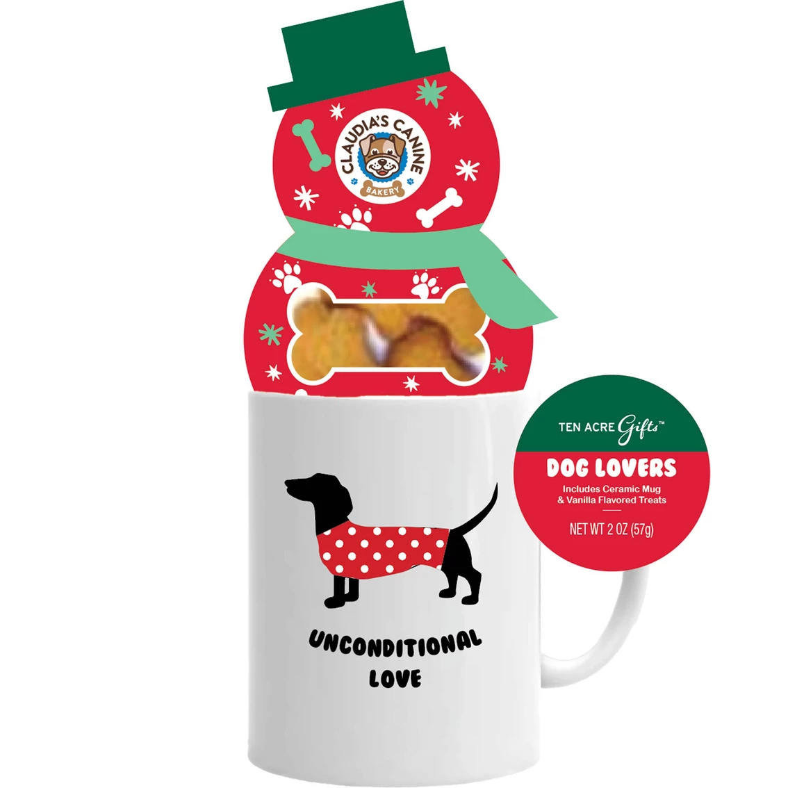 The Ten Acre Gifts All You Need is Love and a Dog treats and mug 2-piece gift set is a creative and fun gift for any dog lover. The mug is very thoughtful and practical and the treats show appreciation and love for the fur baby. The set includes a 14 oz. ceramic mug and vanilla flavored ‘Luv Bone’ treats (2 oz.). Model: PTA00113006.