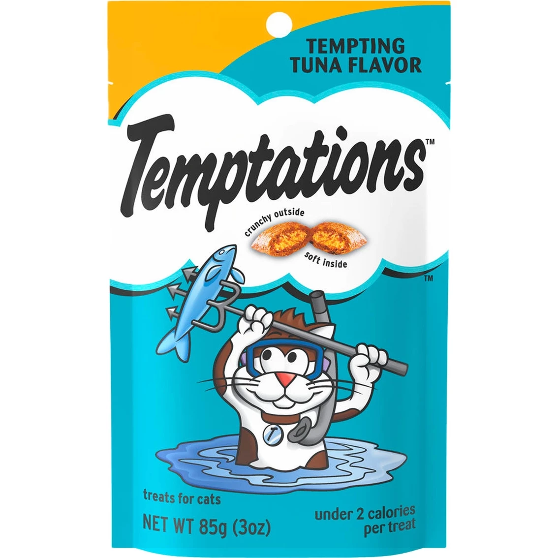 Whiskas Temptations Tempting Tuna Treats have a tasty, crunchy outside and an irresistible soft center that cats love. Shake the pouch and watch your cat come running. Your feline friend will love the delicious tuna flavor and you’ll love her improved dental health. 3 oz.