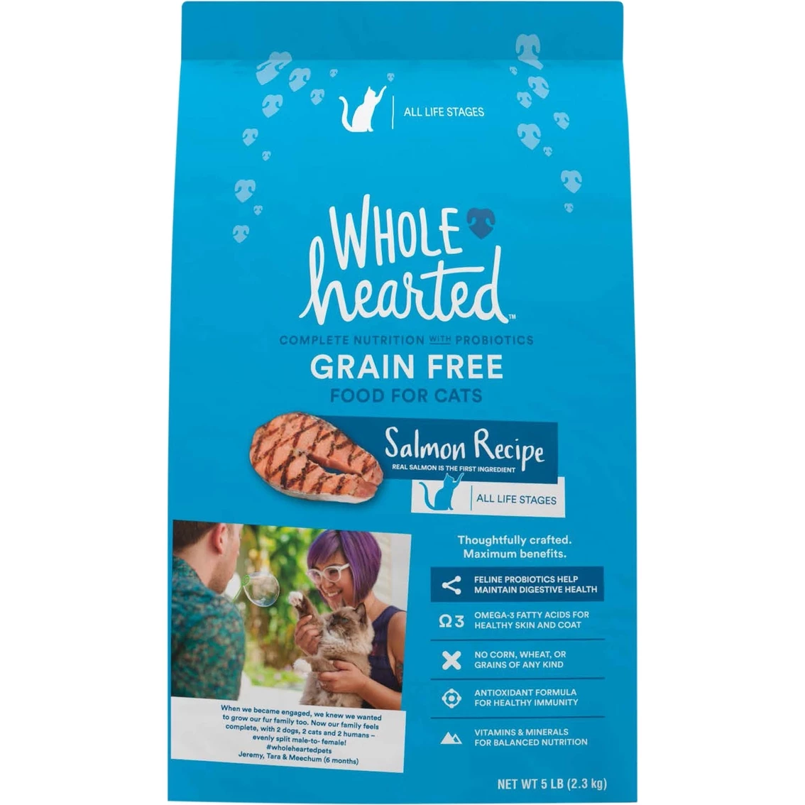 Offer your feline a dish brimming in nutritious benefits with the WholeHearted Grain Free All Life Stages Salmon Formula Dry Cat Food. This tasty kibble features real salmon as the number 1 ingredient and zero grains.